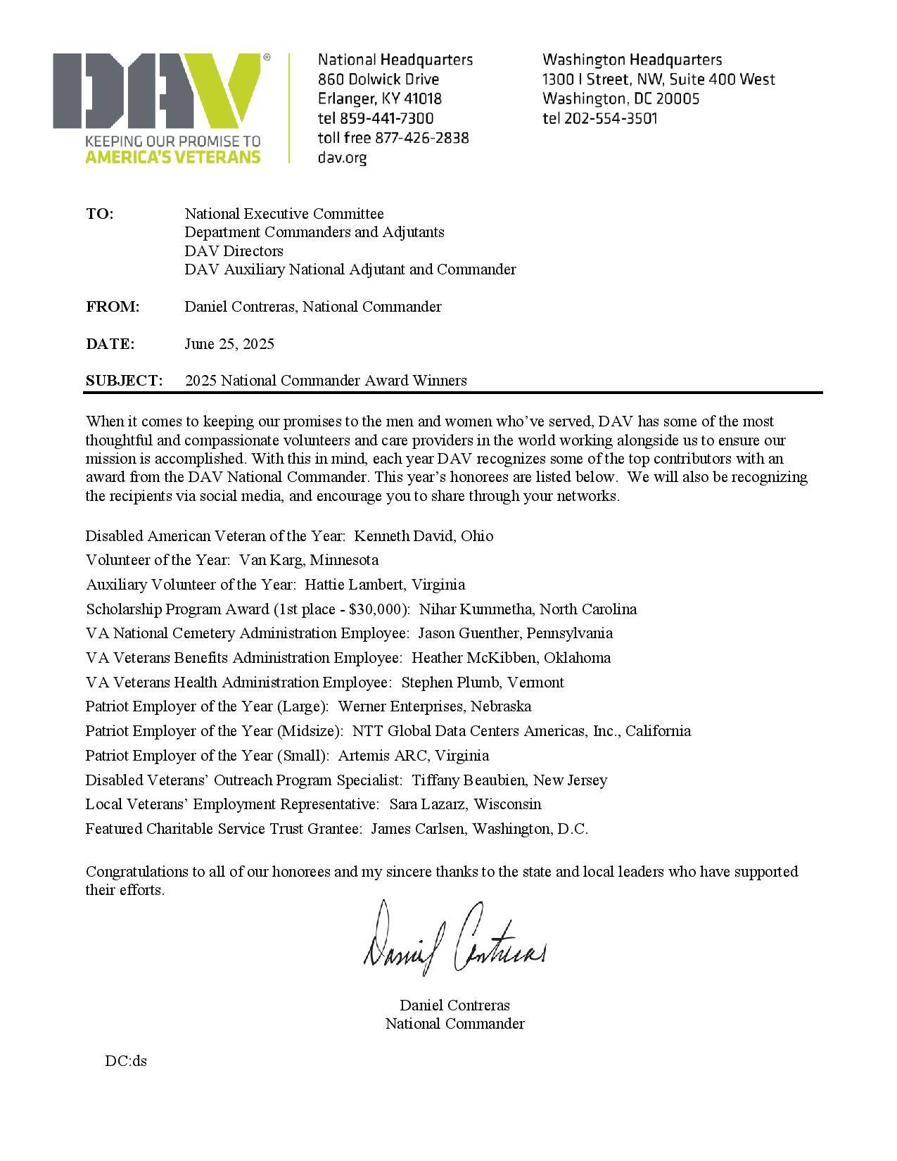 DAV MN Ch 37 Member Van Karg to Receive 2025 National Commander Award